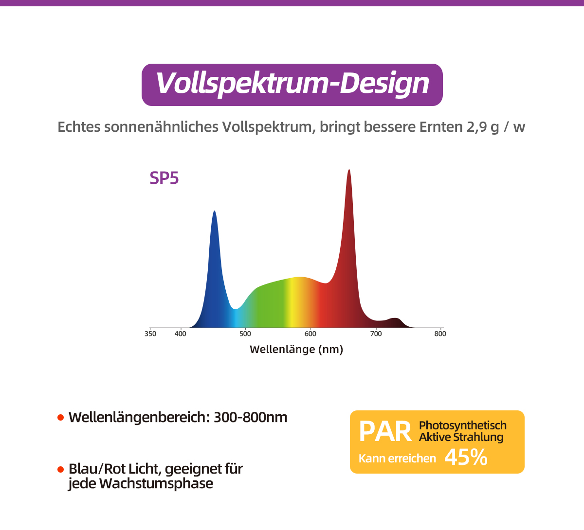 ● 3,0 μmol/J Effizienz | Vollspektrum-Kontrolle